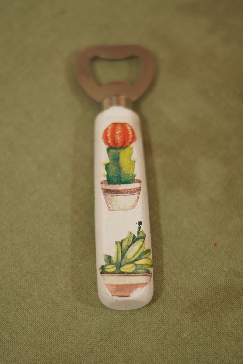 Cada abridor se realiza artesanalmente mediante la técnica del decoupage. El diseño se aplica a mano y se protege para un acabado duradero. Por ello, cada pieza es única, con pequeñas variaciones que le dan personalidad.