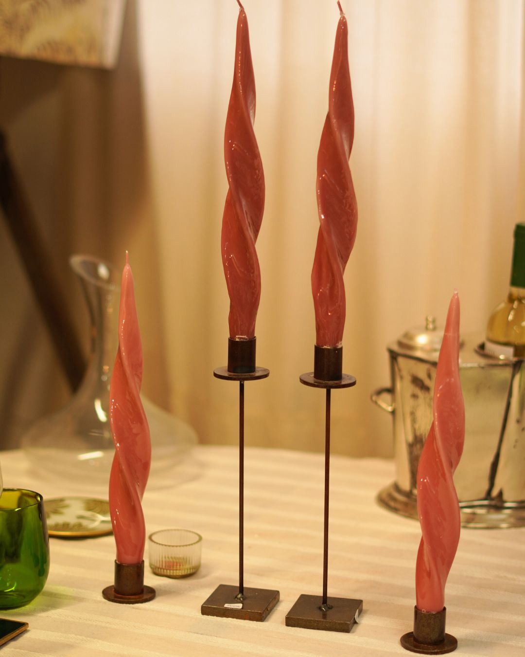 Son extremadamente versátiles y se adaptan a cualquier estilo de decoración. Funcionan en un comedor moderno, un salón clásico o un dormitorio con detalles elegantes. Son ideales para decorar la mesa en cenas especiales. Aportan glamour y refinamiento que convierte cada momento en una ocasión memorable. Su diseño compacto permite colocarlos en cualquier rincón de la casa. Sobre una consola, una repisa o junto a otros objetos decorativos, crean composiciones armoniosas y con carácter.