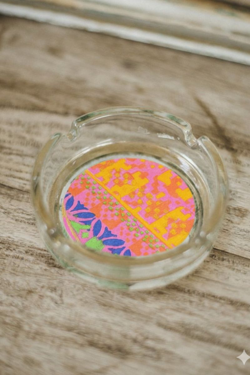Cenicero de cristal con estampado artesanal.