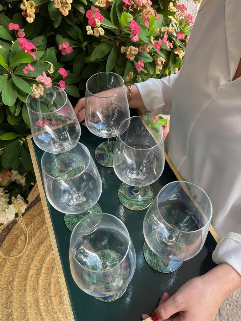 Las copas de vino no solo realzan el sabor de la bebida, sino que también juegan un papel importante en la estética de la mesa. Cuando las combinas con nuestras tablas rectangulares o giratorias de La Mela, logras una presentación equilibrada y elegante. Imagina una tabla con una cuidada selección de quesos, uvas frescas, frutos secos y pan artesanal, acompañada de copas relucientes que reflejan la luz del entorno. Esa armonía visual crea una atmósfera acogedora, sofisticada y perfecta para compartir momentos especiales. Las copas también ayudan a marcar el estilo de la reunión: unas más clásicas aportan un toque de distinción, mientras que diseños modernos pueden dar una nota fresca y contemporánea. En La Mela creemos que los detalles son los que hacen que cada mesa cuente una historia única.