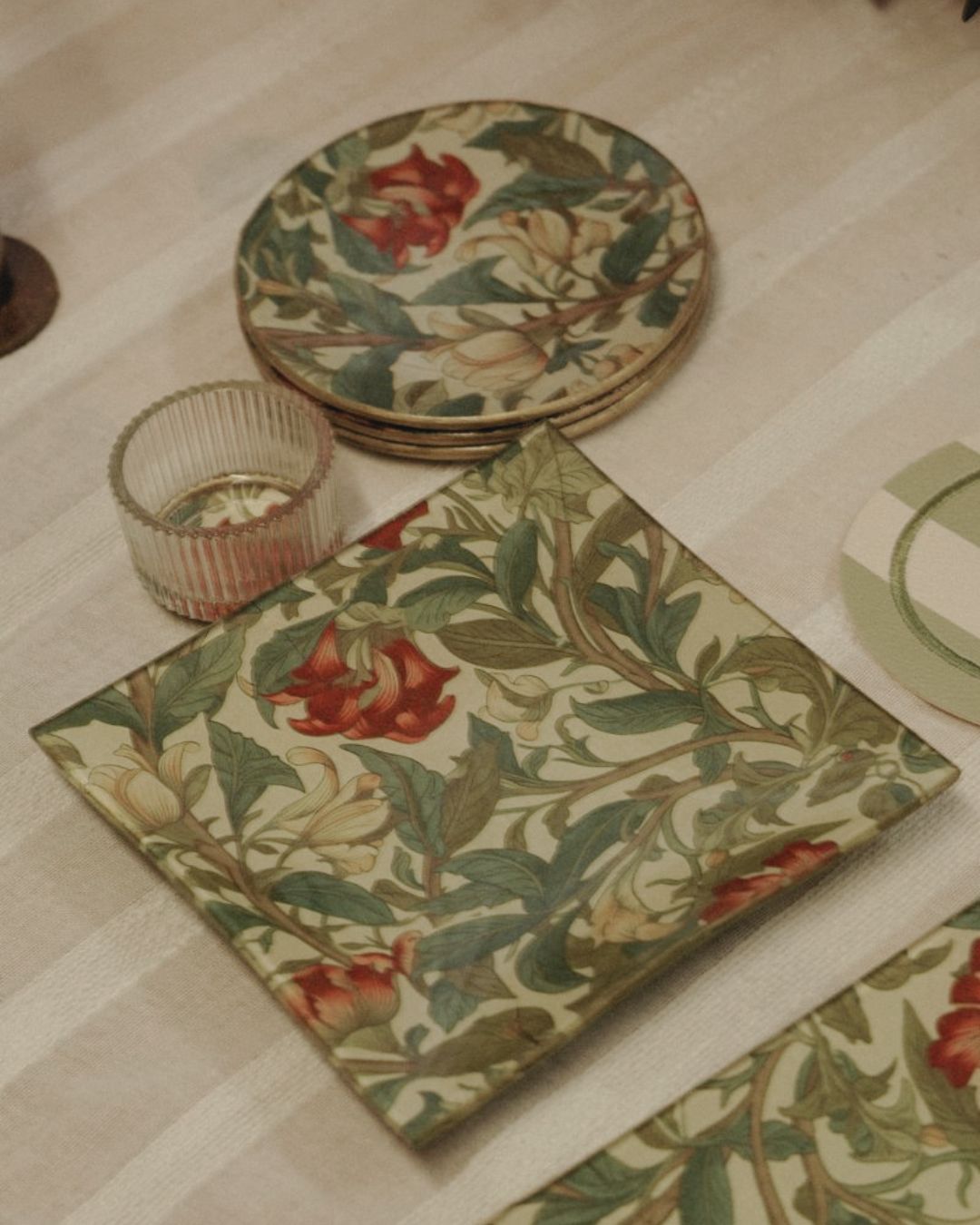 Cada cuenco está elaborado de forma artesanal, utilizando la técnica del decoupage, un proceso manual que requiere dedicación y precisión. El estampado se aplica cuidadosamente en el fondo del cuenco, creando un efecto visual delicado y sorprendente que se aprecia a través del cristal. Gracias a este trabajo hecho a mano, cada pieza es única, con ligeras variaciones que la hacen especial e irrepetible.