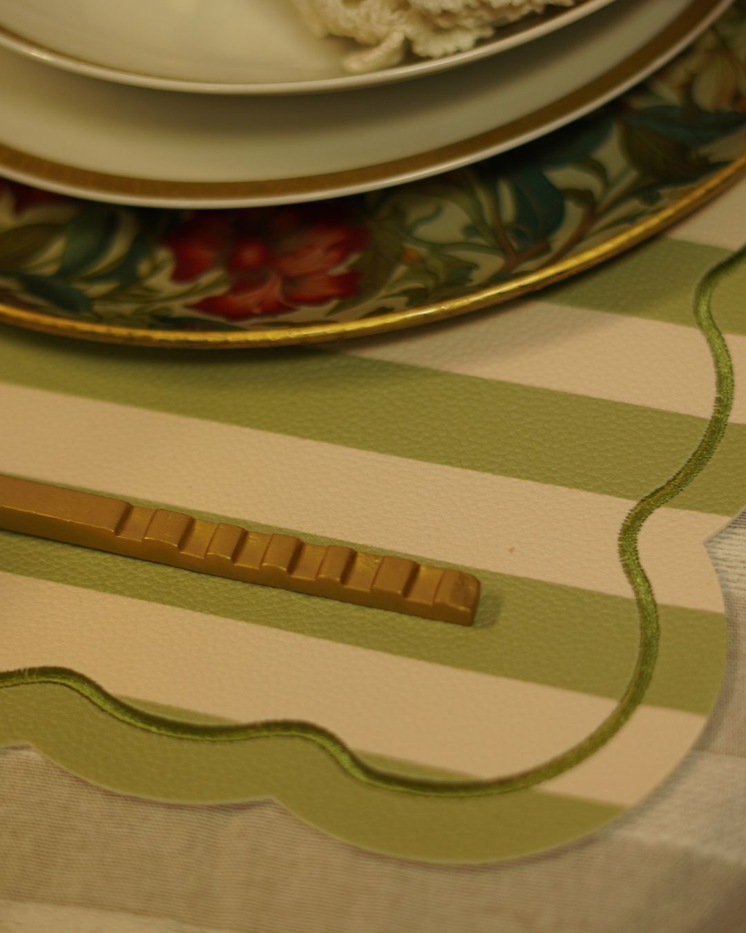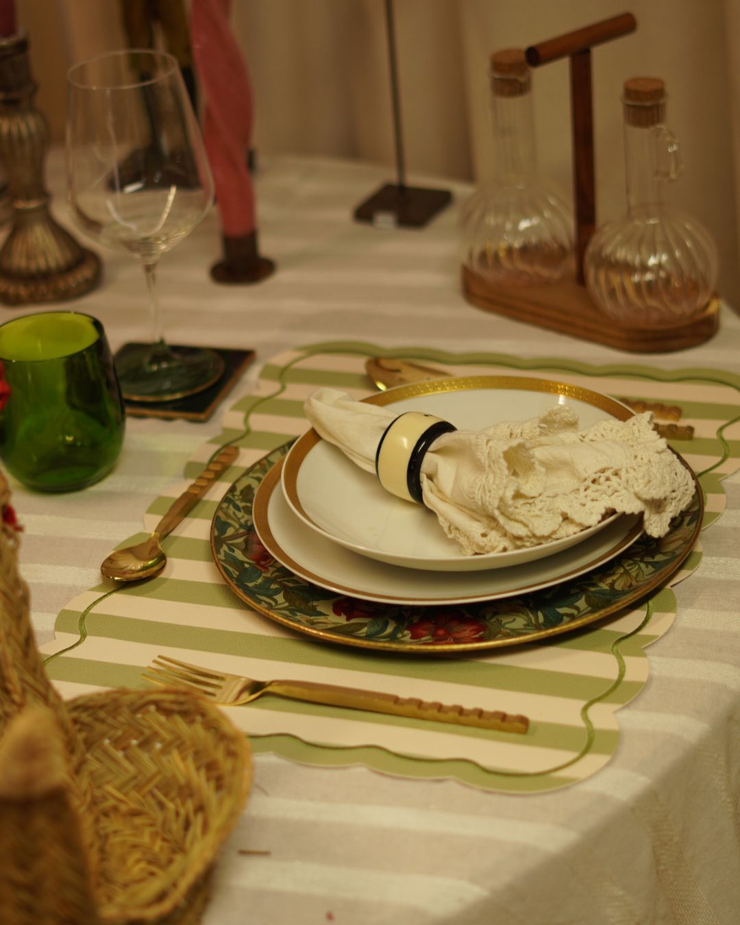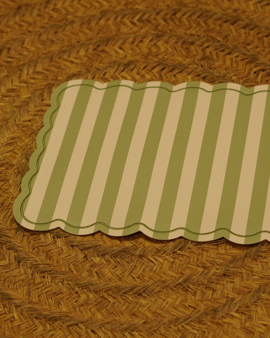 Disponible en color verde y marrón, su paleta transmite una sensación natural, cálida y acogedora. El verde aporta frescura y calma, mientras que el marrón añade un toque artesanal y elegante, creando un equilibrio perfecto que encaja tanto en interiores como en mesas al aire libre. Las rayas, protagonistas del diseño, aportan dinamismo visual sin resultar recargadas, haciendo que cada puesto en la mesa se vea armonioso y bien pensado.