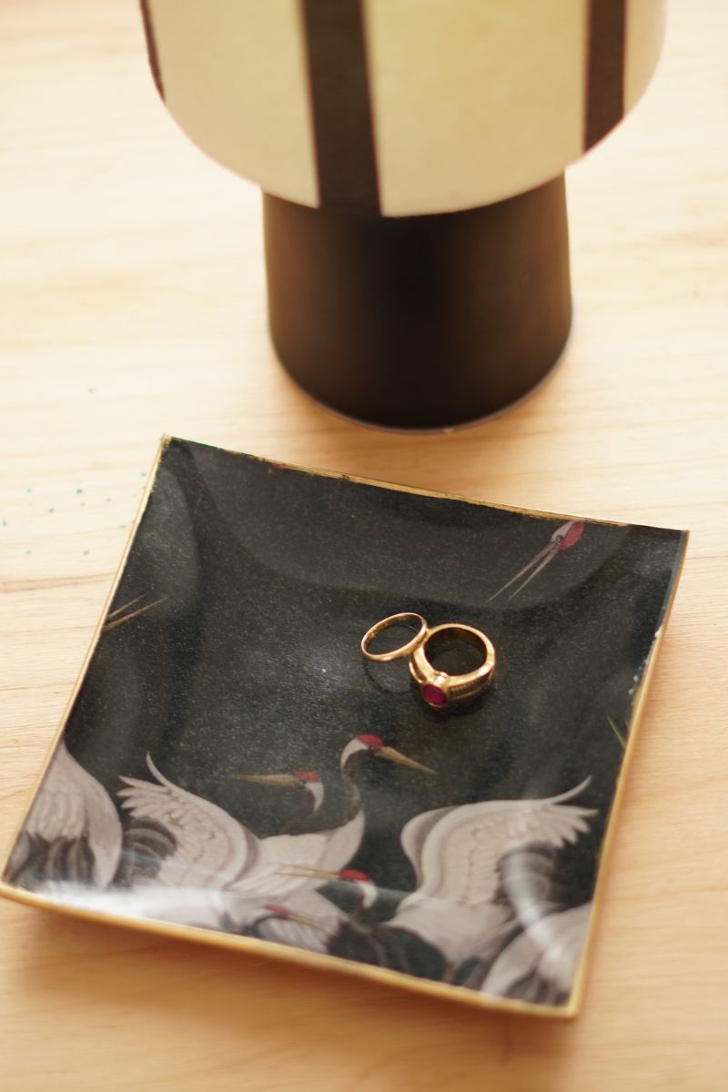 Con el Plato Cuadrado Pájaros Negros, llevas a casa una pieza funcional y artística. Cada mirada descubre la delicadeza del decoupage y la belleza del estampado de pájaros blancos. Es perfecto para quienes buscan objetos únicos, con personalidad y un toque de sofisticación. Este plato demuestra que incluso los detalles cotidianos pueden ser especiales y memorables.