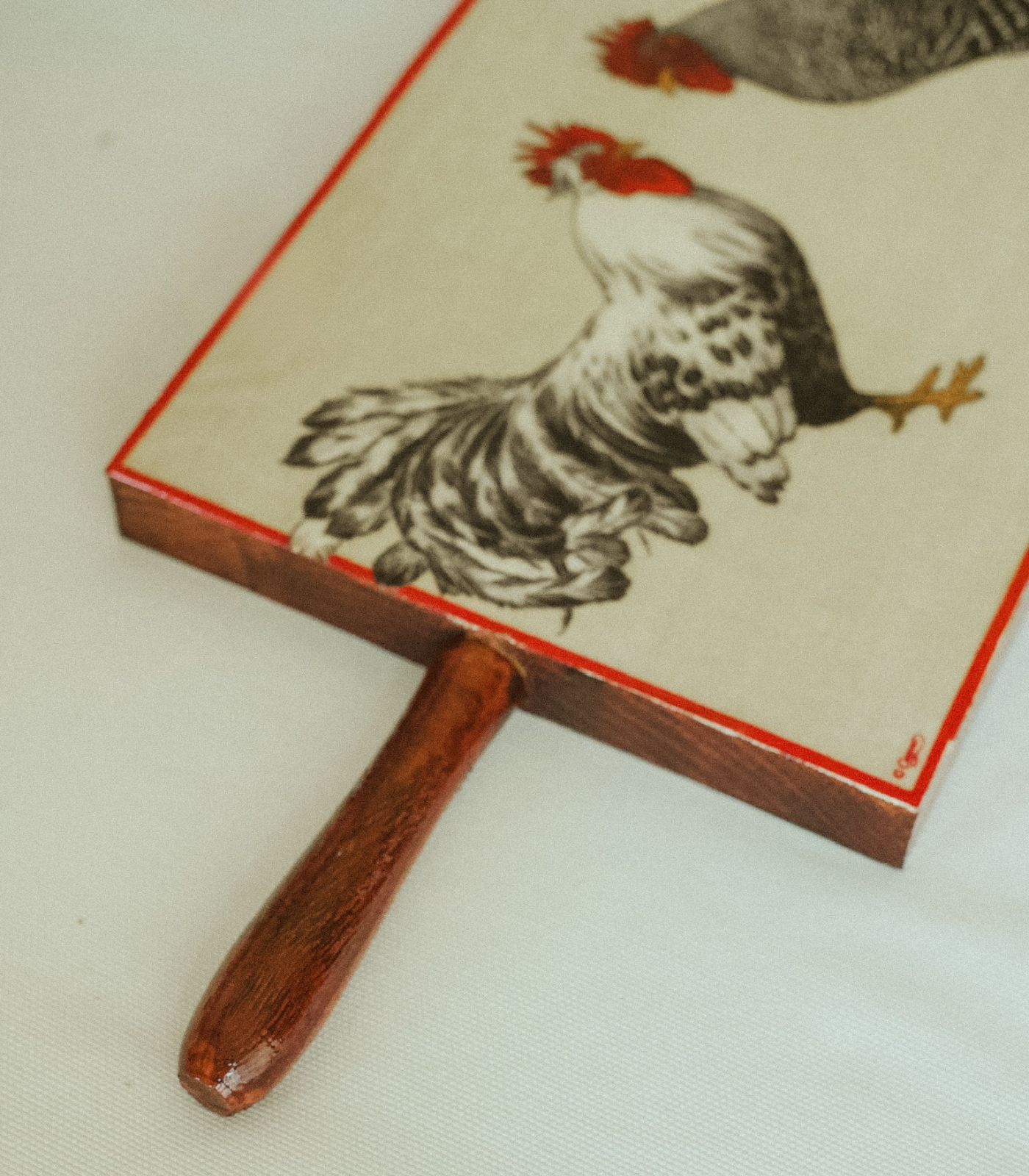 Nuestras tablas están elaboradas en madera con técnica decoupage y pintadas a mano. Medidas: 35cm largo (26cm sin mango) x 17cm ancho x 2cm alto.