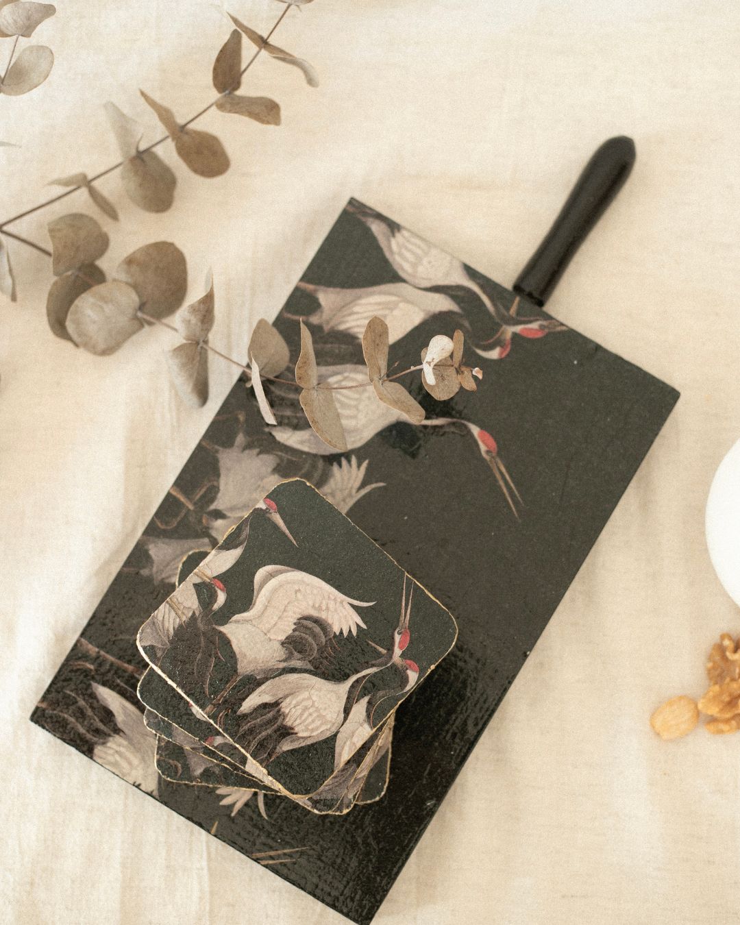 Nuestras tablas están elaboradas en madera con técnica decoupage y pintadas a mano. Medidas: 35cm largo (26cm sin mango) x 17cm ancho x 2cm alto.